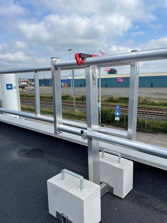 Våra innovativa fallskyddsräcken med kompakt fot är designade för låglutande tak och erbjuder enastående stabilitet och säkerhet för arbetslag.