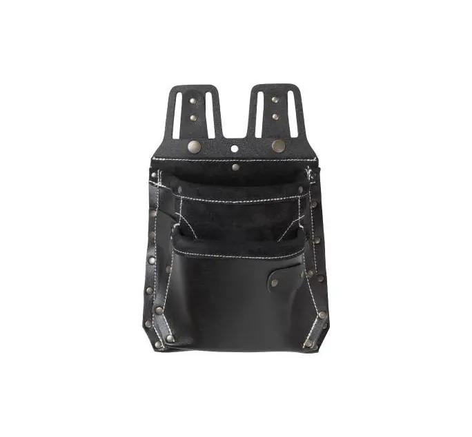 2 fack för skruv, spik m.m. Djup 200 mm. Knivhållare. Nitförstärkt. Quickgrip.Material: Slitstarkt läder.Tidigare modellnummer: 21332.